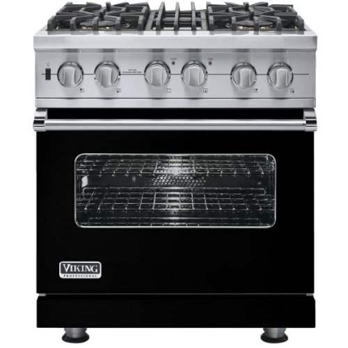 Viking VDSC530-4BLP 30-Inch Pro Series Dual Fuel Propane Gas Range With 4 Burners - Black. VDSC530-4BBKLP. Propane Ranges. Viking puts you in control with all of the tools you need for professional cooking in the kitchen. Experience Viking luxury with this 30-inch sealed burner dual fuel range by Viking. Viking incorporates professional design and lasting quality in every range, making this the last range you will ever need to buy. This savings-friendly appliance is fueled using clean-burning propane gas. This Viking range is equipped with an exclusive SureSpark ignition system, promising a spark every time. Preheat time is quicker with the Rapid Ready system. Spend less time waiting and more time cooking the foods you love! Experience baking with the professionals, with the even heat circulation provided by the Vari-Speed, Dual Flow circulation system, which allows the fan to be turned in both directions. Viking gas surface burners feature VariSimmer technology which allows you to precisely define ultra-low cooking temperatures. The restaurant-quality, Gourmet-Glo infrared broiler produces intense heat that sears food and locks in juices. Viking boasts the largest capacity oven in the industry, making their ranges the ideal solution for cooking for a family, friends or large gathering. The dual concealed bake element provides precise temperature control and helps to reduce the time spent cleaning up. Four permanently sealed burners push a powerful 50,000 BTUs and prevent spills that are hard to reach. The knobs are designed with safety in mind, providing childproof, slip-proof operation and reliable stainless steel and rubber construction. This Viking range sports a sleek black finish that is the ideal complement for any kitchen. For your convenience, this range includes stainless steel island trim.
